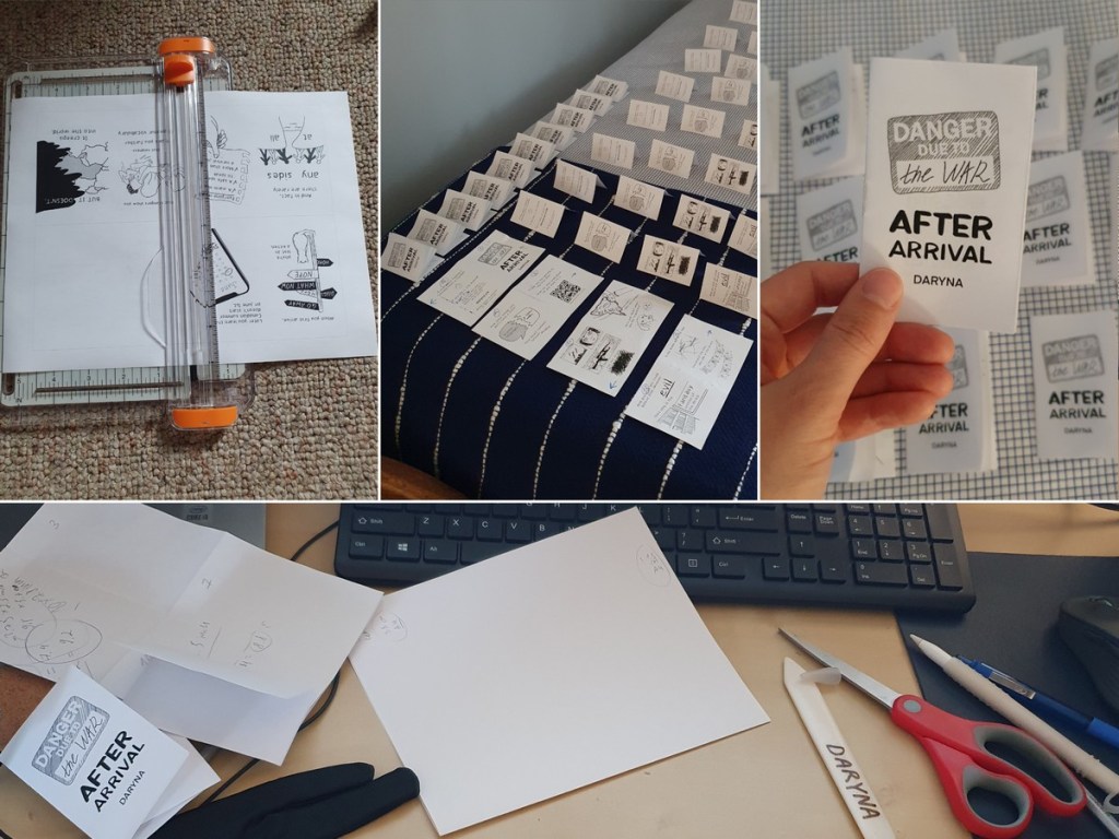 Spring 2025 – Became determined to finish the zine and submit it to the KW Minizine Machine contest. I chose black and white printing so I could make everything at home.